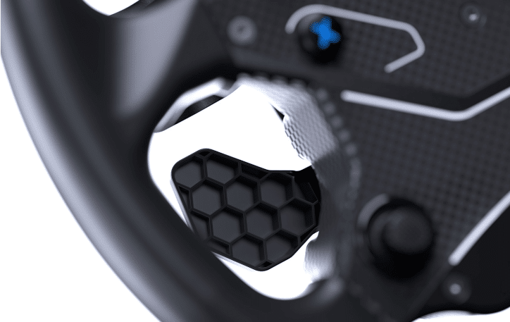 Ein echtes Highlight sind die multifunktionalen analogen Hebel mit verstärkter Wabenstruktur. Per Drehschalter kannst du zwischen vier Modi wechseln: Clutch Bite-Point Modus (Standard/Erweitert), Clutch/Handbrake-Modus, Brake/Throttle-Modus (Fahren komplett ohne Fußpedale möglich!) und einem frei belegbaren Achsen-Modus. Das Dual-Clutch-Paddle-System ist eine echte Geheimwaffe für perfekte Rennstarts. Das Fanatec Lenkrad funktioniert in jedem Spiel mit analoger Kupplungssimulation einwandfrei und gibt dir einen enormen Vorteil.