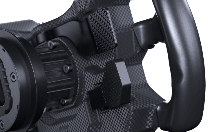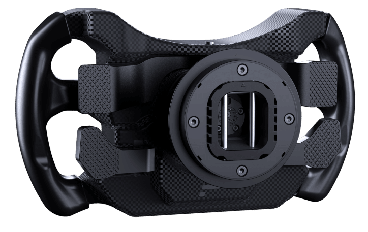 Das vormontierte QR2 Lite Wheel-Side aus kohlefaserverstärktem Verbundmaterial garantiert einen sicheren und schnellen Lenkradwechsel. Der Verriegelungsstift und die spezielle Form sorgen für einen festen Sitz – stabil, zuverlässig und in Sekunden einsatzbereit, ohne den QR-Mechanismus ziehen zu müssen. Zudem ermöglicht dieses Lenkrad den High-Torque-Modus auf ClubSport DD-/DD+ und Podium DD1-/DD2-Bases für maximale Kraftübertragung.